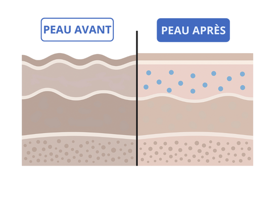 L’acide hyaluronique est une molécule naturellement présente dans la peau, capable de retenir jusqu’à 1000 fois son poids en eau. Avec l’âge, son niveau diminue, provoquant rides et relâchement. Un apport externe permet de réhydrater, repulper et lisser visiblement la peau.